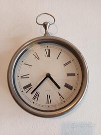 orologio da parete in stile "cipolla" con numeri romani, realizzato con cornice cromata -argentata e progettato per essere appeso.