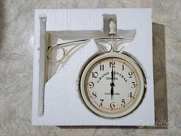 Orologio da parete bifacciale, in stile Stazione Ferroviaria, a batterie, vintage. Da un lato l'orologio funziona dall'altro no... "da riparare."