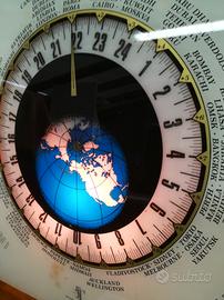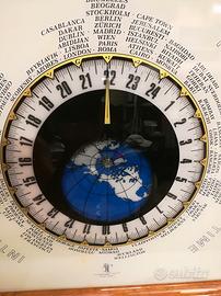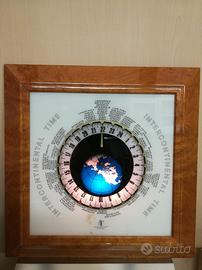 Orologio da parete grandezza cm. 60 per cm. 60 retroilluminazione cornice in radica orari intercontinentali, molto particolare. Funzionante.