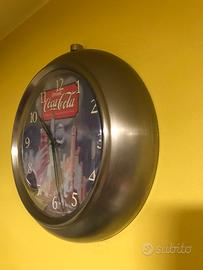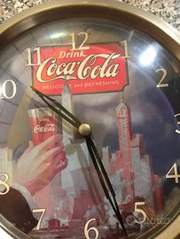Meraviglioso orologio da parete pubblicitario originale Coca Cola vintage con sfondo New York, acquistato in America versione di difficile reperibilità misura diametro 28 X 28 e funziona con batteria. Splendido per appassionati collezionisti, in buone condizioni generali.