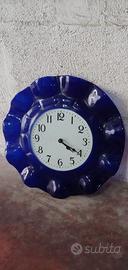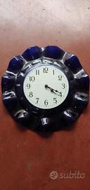 Vendo orologio da parete dal design particolare, con ampia cornice blu effetto vetro che dona un tocco decorativo e originale a qualsiasi ambiente.