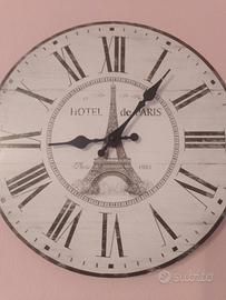 orologio da parete con torre Eiffel fondo color crema scritte e numeri color caffè diametro cm 33