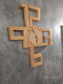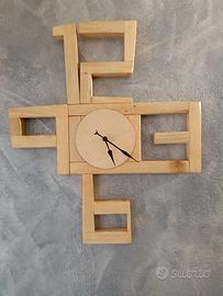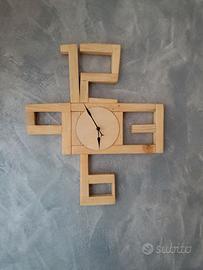 Orologio da parete in abete stilizzazzato fatto interamente a mano. 55cm di altezza, 50 di larghezza, per un peso di soli 1200 grammi. Elegante, luminoso, dal design particolare ed accattivante. Otiimo per qualunque tipo di arredamento moderno e non. Facile da abbinare al proprio stile.