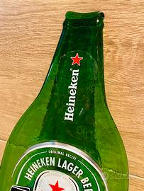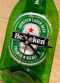 Orologio da parete HEINEKEN vintage anni ‘90 realizzato con una bottiglia di birra schiacciata.