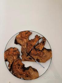 Orologio da parete artigianale in legno d’ulivo e ferro zincato.