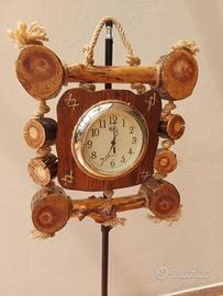 Orologio da parete in legno fatto a mano movimento continuo a quarzo non rumoroso marca dell'orologio R&L funzionante condizioni ottimo dimensioni larghezza 35cm altezza 40cm prodotto raro.