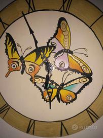 Vendo orologio da parete in legno, con disegno di farfalle. Funzionante con pila.