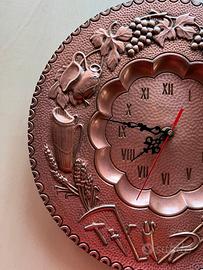 Orologio da parete in rame lucido decorato quattro stagioni movimento al quarzo!! Articolo raro da trovare sul mercato!! L’orologio è dotato di gancio per appenderlo alla parete funziona con una normale batteria stilo!!! Dimensioni: 35 cm!! Molto bello anche come oggetto d'arredamento per la propria casa! E' un orologio molto particolare- vintage per le sue raffigurazioni in rilievo!!!! Ottimo anche perchè è nuovo, quindi ideale anche per un regalo !! Articolo raro da trovare!! Nuovo ottimo da appendere e abbellire la casa!! Raro da trovare!! Orologio in rame con rappresentato in rilievo le quattro stagioni molto particolare e difficile da trovare è perfettamente funzionante!! Nuovo molto bello e particolare!! Ottimo affare è nuovo!! Orologio da parate in rame molto particolare e raro da trovare sul mercato!! Ottimo per abbellire la propria casa!!