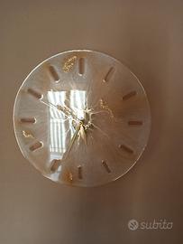 Bellissimo orologio da parete, realizzato in resina epossidica, con un effetto che ricorda il marmo o la madreperla e l'aggiunta di elementi luccicanti.