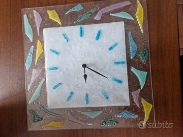 orologio da parate in vetro, lavorato a mano. Dimensioni 39x39 cm. Mai usato.