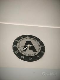 orologio da parete decorativo in stile shabby chic con numeri romani e la lettera "A" centrale.diametro 40 cm