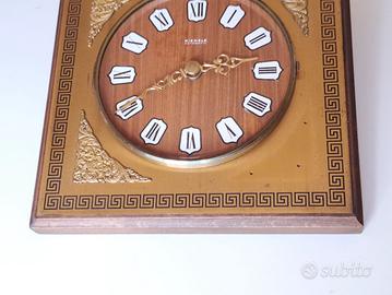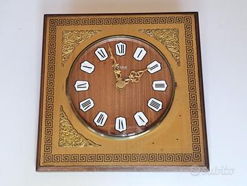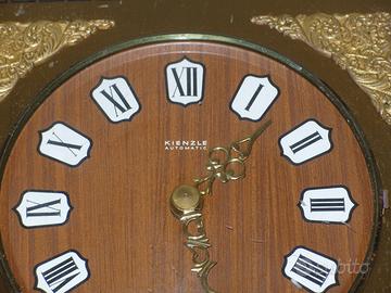 Orologio da arredamento da parete Kienzle Automatic vintage anni 60 made in Germany , con movimento misto meccanico-elettronico in una cornice in legno pieno con sovrastante lastra in ottone ornata da 4 fregi angolari , in eccellenti condizioni e perfettamente funzionante.