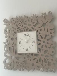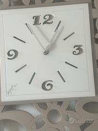 Bellissimo orologio da parete con quadrante bianco e finitura color sabbia. Quadrato 50x50