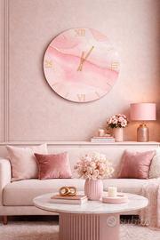 Elegante orologio da parete dal design raffinato e delicato, caratterizzato da uno sfondo rosa con dettagli e venature effetto marmo arricchiti da eleganti finiture oro. Un complemento d’arredo perfetto per ambienti moderni, romantici e di classe. Le lancette e i numeri romani in finitura oro risaltano sul quadrante, donando luminosità e un tocco di lusso, oltre a garantire una lettura dell’ora chiara e precisa. Le sfumature rosa unite ai dettagli dorati creano un effetto armonioso e sofisticato, trasformando questo orologio in un elemento decorativo di grande impatto visivo. Prodotto realizzato da un’azienda seria e affidabile Non è un prodotto cinese Materiali di alta qualità e cura nei dettagli Disponibile in diversi diametri: 40 cm 60 cm 80 cm 100 cm Il prezzo varia in base al diametro scelto Perfetto per camere da letto, soggiorni o ambienti eleganti, aggiunge un tocco di stile unico alla parete. Contattami per maggiori informazioni