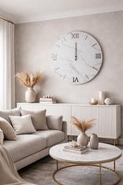 Orologio da parete bianco effetto marmo con numeri e lancette argento, elegante e moderno, perfetto per dare luce e raffinatezza a qualsiasi ambiente della casa o dell’ufficio. Il quadrante bianco con delicate venature effetto marmo dona un aspetto molto ricercato, trasformando questo orologio in un vero complemento d’arredo.