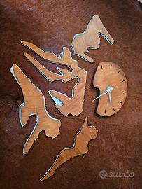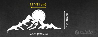 Orologio da parete montagna da applicare con chiodino e biadeviso nella parte sottostante. Applicato ma cambiato subito per cambio cucina. Realizzato a mano, legno vero, colore Walnut. Lancette bianche Imballato con cura.