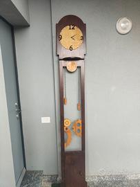 fatto a mano, con legni di recupero e meccanismo a batteria, perfettamente funzionante. Rifinito con impregnante trasparente e colore noce. Può essere appeso o appoggiato. Solo ritiro a mano a mio domicilio, a Seregno. altezza 240 cm larghezza 37, 5 cm profondità massima ( pomello) 5 cm. Ideale per occultare pilastri o angoli