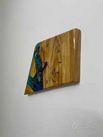 Orologio da parete in legno di ulivo e resina epossidica. CM 40x30x3 ca