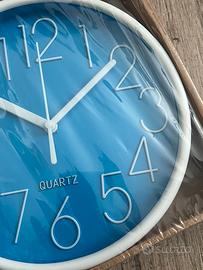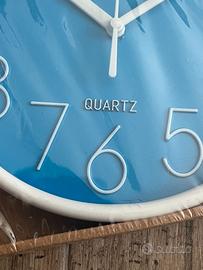 Vendo orologio da parete Quartz, dal design semplice e moderno, nei colori bianco e azzurro, ideale per cucina, cameretta, ufficio o studio.