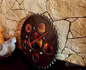 Come da titolo vendesi orologio da parete interamente realizzato a mano con una corona catena. Realizzato da appendere ma volendo va bene anche su una scrivania con piedistallo che verrà dato insieme all'orologio. per qualsiasi info resto a disposizione