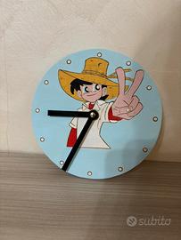 Piccolo orologio di 16 cm di diametro da parete con raffigurato il cartone Sampei con cappello di paglia..