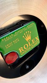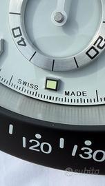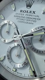 Splendido orologio da parete di grandi dimensioni ispirato al celebre design Rolex Cosmograph Daytona, ideale come elemento d’arredo per casa, ufficio, negozio o collezionisti. Realizzato con grande cura nei dettagli, presenta quadrante bianco con indici luminescenti, tre contatori cronografici decorativi e lunetta nera con scala tachimetrica “Units per hour”. Le finiture effetto acciaio satinato e il design fedele lo rendono un oggetto elegante e di forte impatto visivo. 🔹 Caratteristiche principali: •Movimento al quarzo (funzionamento a batteria) •Diametro importante circa 34 cm •Quadrante dettagliato stile Daytona •Lunetta nera con scala tachimetrica •Ottima leggibilità •Ideale come complemento d’arredo o per vetrine 🔹 Nota: Si tratta di un oggetto decorativo ispirato al marchio, non un prodotto ufficiale certificato. 🔹 Condizioni: Ottime condizioni estetiche, come da foto. Perfettamente funzionante Perfetto per gli amanti degli orologi di lusso o per dare un tocco esclusivo agli ambienti.
