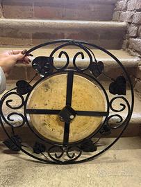 Orologio da parete in ferro battuto con decorazioni floreali.