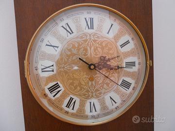Orologio da parete vintage ma in ottime condizioni.Sostituito meccanismo meccanico con carica a chiavetta (non riparabile), con uno a batteria, ma perfettamente funzionante (si nota un piccolo difetto dove c'era il foro per la carica frontale a chiavetta). Non spedisco data la delicatezza. Controlla se ti può interessare qualcosa nei miei annunci. Grazie