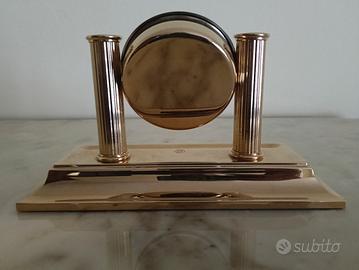 Orologio da scrivania con portapenne in ottone placcato in oro 23 kt. Marca : EL CASCO in ottime condizioni. Dimensioni 22x10x13 cm circa