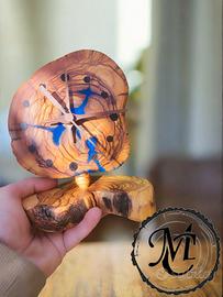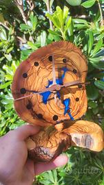 Bellissimo orologio in ulivo e resina epossidica lavorato a mano Con riferimenti in palissandro india e lancette in legno di noce