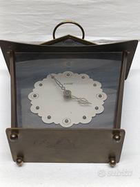 Piccola ed elegante sveglia in ottone, kohler, funzionante, con carica a rotella durata otto giorni.