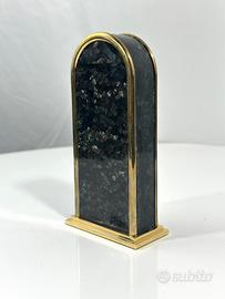 Orologio da scrivania elegante e raffinato, con corpo in metallo dorato e inserti effetto radica lucida. Lo stile dona un tocco classico e professionale, ideale per ambienti studio o ufficio. Oggetto vintage da collezione, perfetto anche come idea regalo 🎁