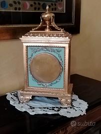 Orologio in ottone da tavola, con motivi di floreali francesi, Oriental d'Art: Altezza 34cm Profondità 11cm Larghezza 18cm Peso 10 kg. Ottimo stato
