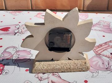 Orologio da tavolo a forma di fiore in pietra e gesso. Misura 19x17cm. Perfettamente funzionante.