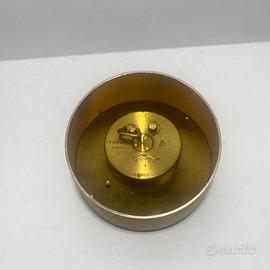 Cassa in Ottone dorato, quadrante in metallo satinato con indici dorati e datario nero. Meccanismo meccanico svizzero funzionante con data regolabile a scatto. Buone condizioni lievi perdite di doratura sparse. Misure: 9.7 diametro x 4.5 h al massimo. Keyword: vintage watch timepiece classic mechanical manual antique timeless preowned reloj clasico mecanico antiguo estilo ocasión uhr klassisch mechanisch antik stil gebraucht orologio classico automatico depoca usato montre classique mecanique ancienne intemporel occasion horlogerie automatique cronograph crono cronografo cronometre