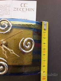 ORIGINALE orologio da tavolo in vetro di Murano e 4 ricami in argento. Prodotto da CC Zecchin - VENEZIA Meccanismo silenzioso al quarzo funzionante con pile. In perfette condizioni come da foto.