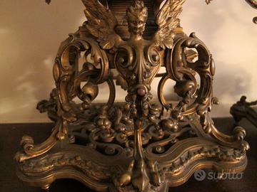 Set orologio e candelabri da tavola, in bronzo con meccanismo a molla. ottimo stato.