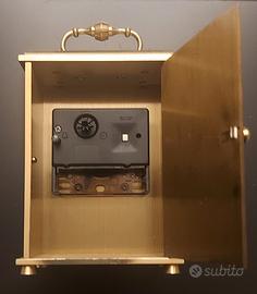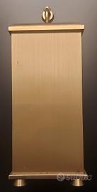Vendo come da foto, orologio da tavolo con cassa in ottone dorato della Swiza e movimento al quarzo. Fatto in Svizzera tra gli anni '60 e '70. Funziona con 1 batteria stilo. Alto circa 13 cm e profondo circa 6 cm.