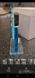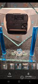 Orologio da tavolo in vetro colorato blu. Nuovo