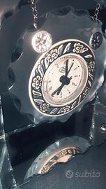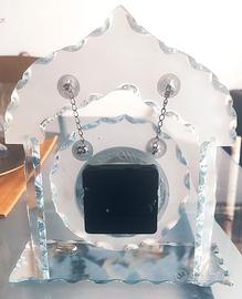 L'orologio è tenuto sospeso da due catenine che aggiungono giochi di luce con la base in vetro leggermente specchiata e un tocco di classe.