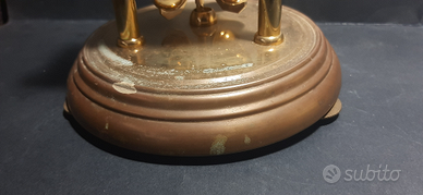 Orologio da tavolo con cupola in vetro, manifattura tedesca, patina dovuta all'età sulla base in ottone. Altezza cm. 23 compresa la cupola.