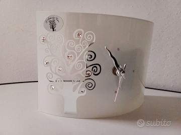 Orologio da tavolo moderno a pila "l'albero della vita" di "l'arte del vetro" (made in Italy). Materiale vetro. Dimensioni 16 X 11 cm profondità 5 cm. Non fornito di pile. Nuovo, funzionante, mai usato (senza scatola originale)