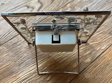 Orologio in cristallo, con applicazioni floreali. Lavorazione in metallo. Meccanismo a batteria stilo. SOLO vendita diretta (consegna a mano o spedizione con corriere e pagamento con bonifico).