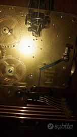 Elegante orologio da tavolo in legno scuro con dettagli dorati e meccanismo KIENZLE.