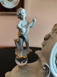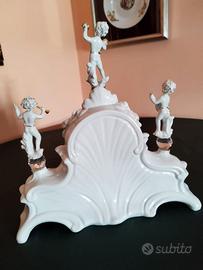 Orologio da tavolo presumibilmente realizzato dall'artista italiano Vittorio Sabadin, anche se non ci sono marchi evidenti. L'orologio è in porcellana, con una finitura bianca madreperlacea. È riccamente decorato in stile rococò con volute e dettagli in oro. La scultura presenta tre figure di cherubini ciascuno con in mano un piccolo strumento musicale, come visibile nelle foto. Include tre piccole sfere in cristallo (probabilmente Swarovski)