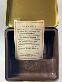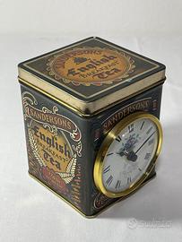 Elegante orologio da tavolo in stile vintage, nuovo e perfettamente funzionante, ispirato alle storiche confezioni di tè inglese Sandersons. Realizzato in latta decorata con quadrante analogico a numeri romani e cornice dorata. Ideale per arredamento, collezione o come regalo raffinato.Consegna a mano o spedizione tracciabile.Altre foto su richiesta.