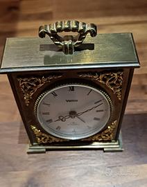 Orologio sveglia da tavolo Vintage, in metallo con rifiniture in ottone. Marchio Vetta. Non funzionante da riparare. Difetti evidenti nelle foto.