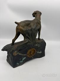 Orologi da tavolo della VEGLIA , raffigurante un cane da caccia , 30 x 30 circa , la struttura ha dei sfgnu del tempo e si notano nelle foro , orologio da testare ,