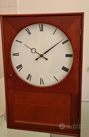Orologio originale marchio De Padova in stile Shaker, legno e impiallacciatura di ciliegio rosso americano, si può appendere a parete oppure appoggiare su tavolo/mensola. Meccanismo al quarzo (pila stilo), perfettamente funzionante. Presenta piccola scheggiatura del legno sul dorso nell'angolo destro in alto. Altezza 52 cm, lunghezza 34 cm, profondità 10 cm. Le dimensioni del pacco grande di Poste italiane non sono sufficienti per contenere l'orologio e materiale di protezione vetro e spigoli. L'orologio si trova a Padova e, per evitare possibili danni durante il trasporto (al meccanismo o al vetro dello sportello), sono disponibile a consegnarlo personalmente in stazione dei treni o parcheggio IKEA attiguo all'uscita autostrada Padova Est.