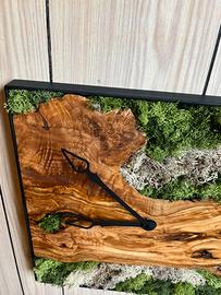 Orologio design da parete in legno di ulivo e muschio stabilizzato. Misura 40x40cm. Ritiro a mano.